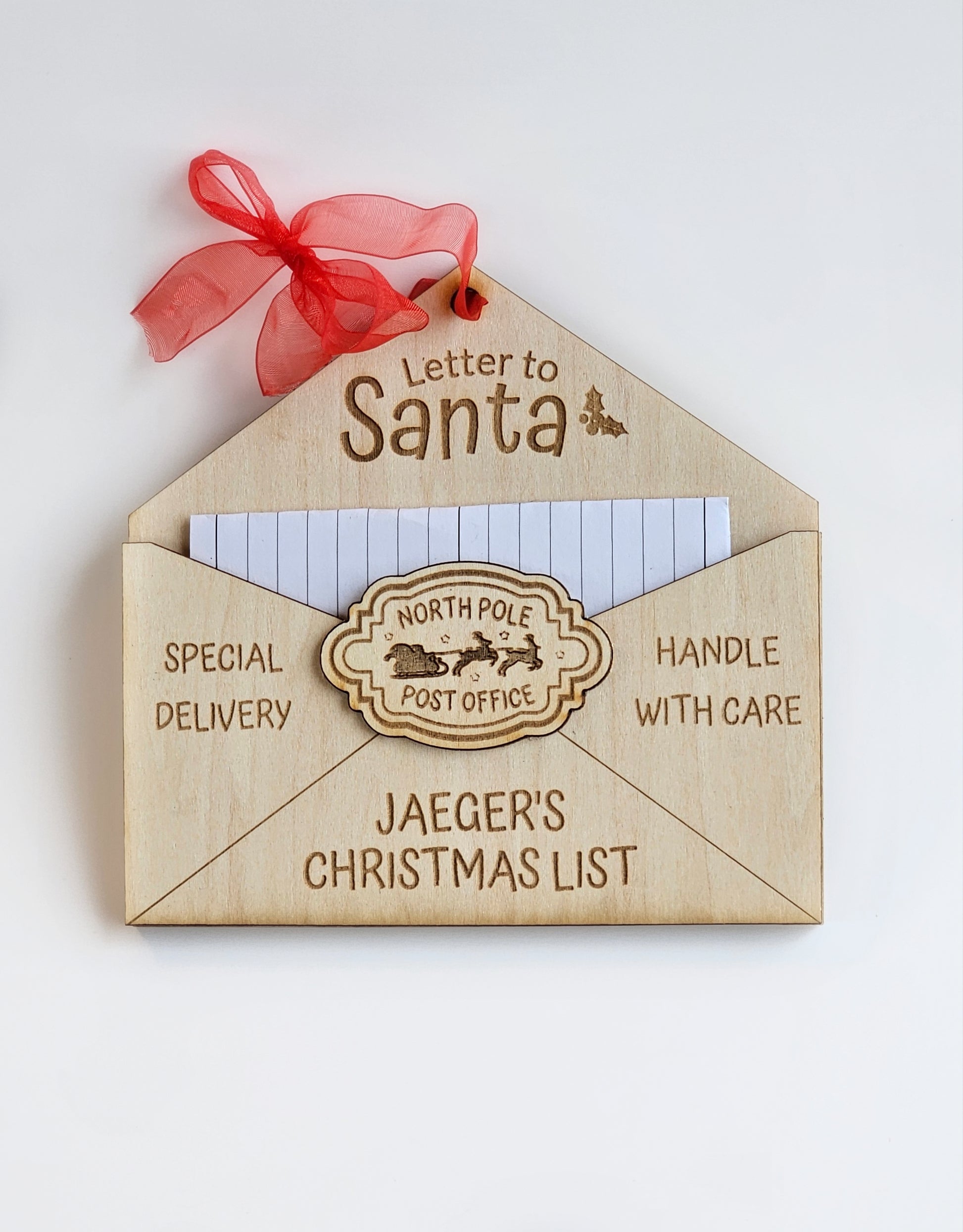 What name would you like to be engraved on the envelope? Example: "Jaeger", then we make it to say "Jaegers's Christmas List". If you would like to leave it blank and/or only have "Christmas List" please note that at checkout. If we do not see a name indicated at checkout, we will only put "Christmas List"